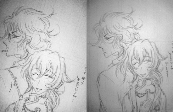 こちらは現在進行形で11月のプチオンリーのために書いている話の筋を説明して描いてもらったものです。Mさんは本来超高品質・超速筆の字書きの人なのに!黒ティキと白ティキを即座に書き換えられる彼女の高スキルは新台入れ替えのたびに速攻でWebや店内ポスターを差し替えるパ○ンコ業界でさらに磨き抜かれているのでしょう。がんばれMさん!!ありがとうMさん! え?原稿? はい、頑張って書きます……。