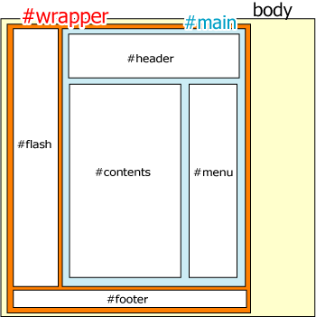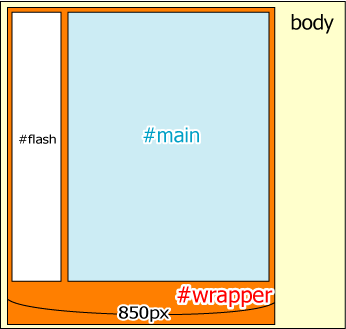 そこで、#flashと#mainを囲む#wrapperを記述し、