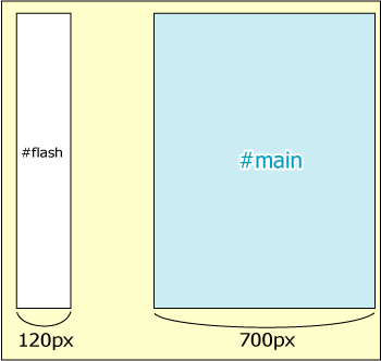 このとき当然ですが、flashとmainの幅(width)の合計はwrapperより小さくなくてはなりません。